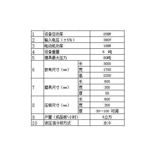 2.3 模具: 300mm x 600mm,一次壓3塊,一分鐘可出9塊,板厚30-80MM可調(diào)。其他尺寸的板材可定制磨具。該磨具經(jīng)過(guò)淬火處理,硬度高不變形。